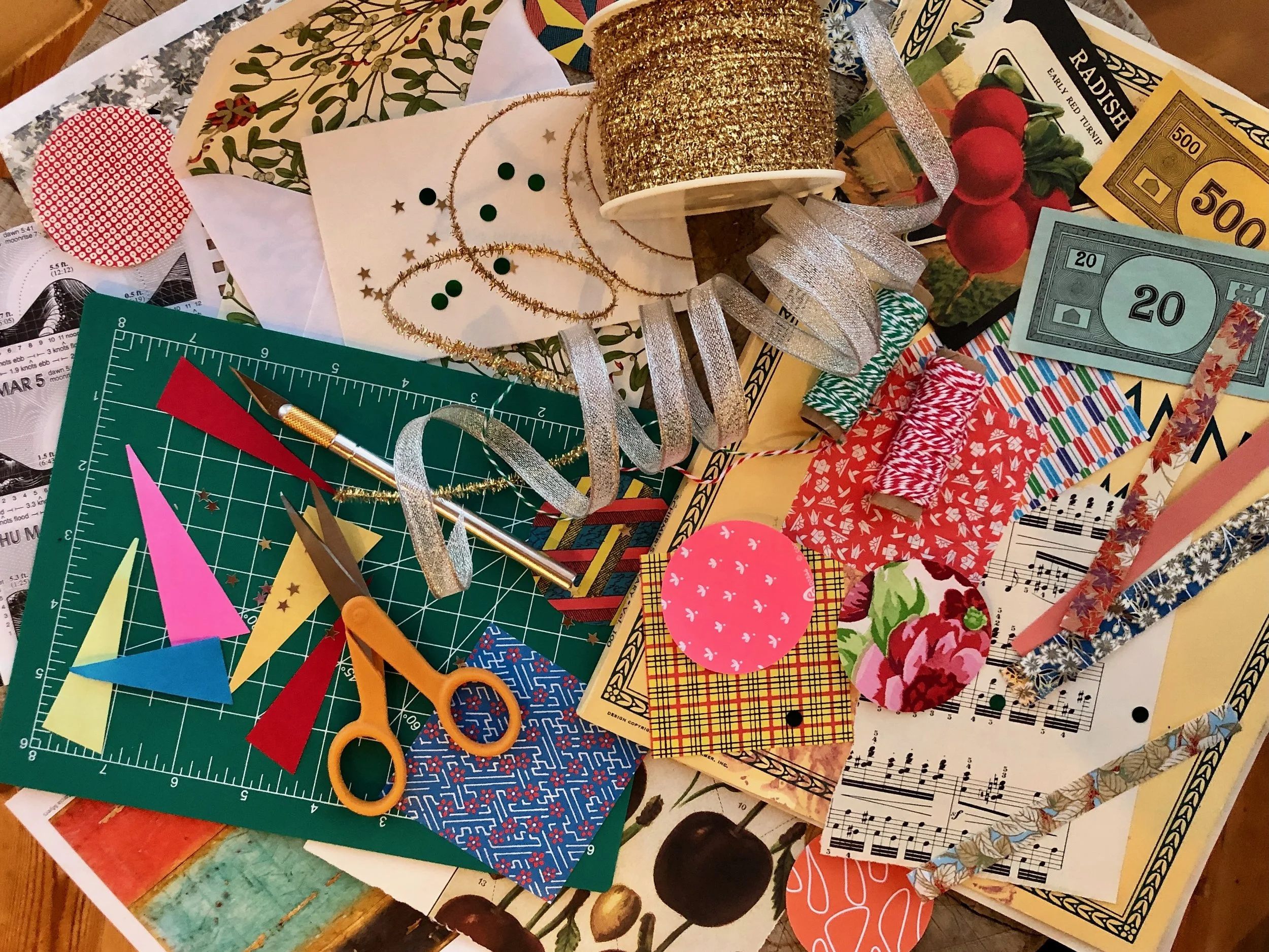 - many trims, twines, tapes and fun things to cut up for collage